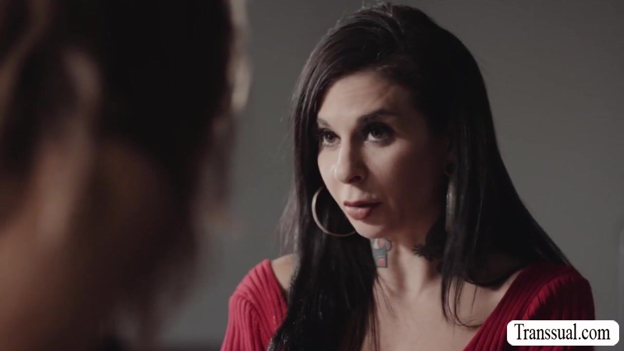 Goth stepmom and her TS stepdaughter are on the couch kissing each other and sucking their nipples.After that,she throats her TS stepdaughters tranny cock passionately and in return,she gets her pussy fucked so deep and hard.
