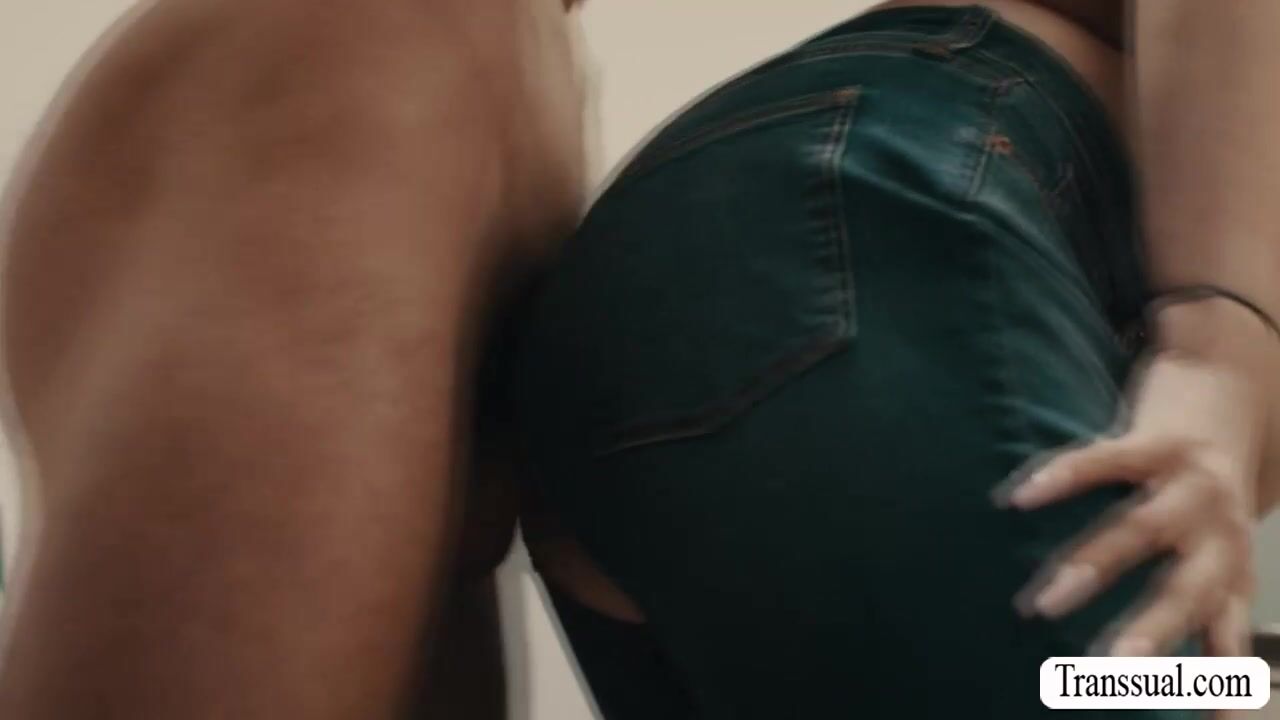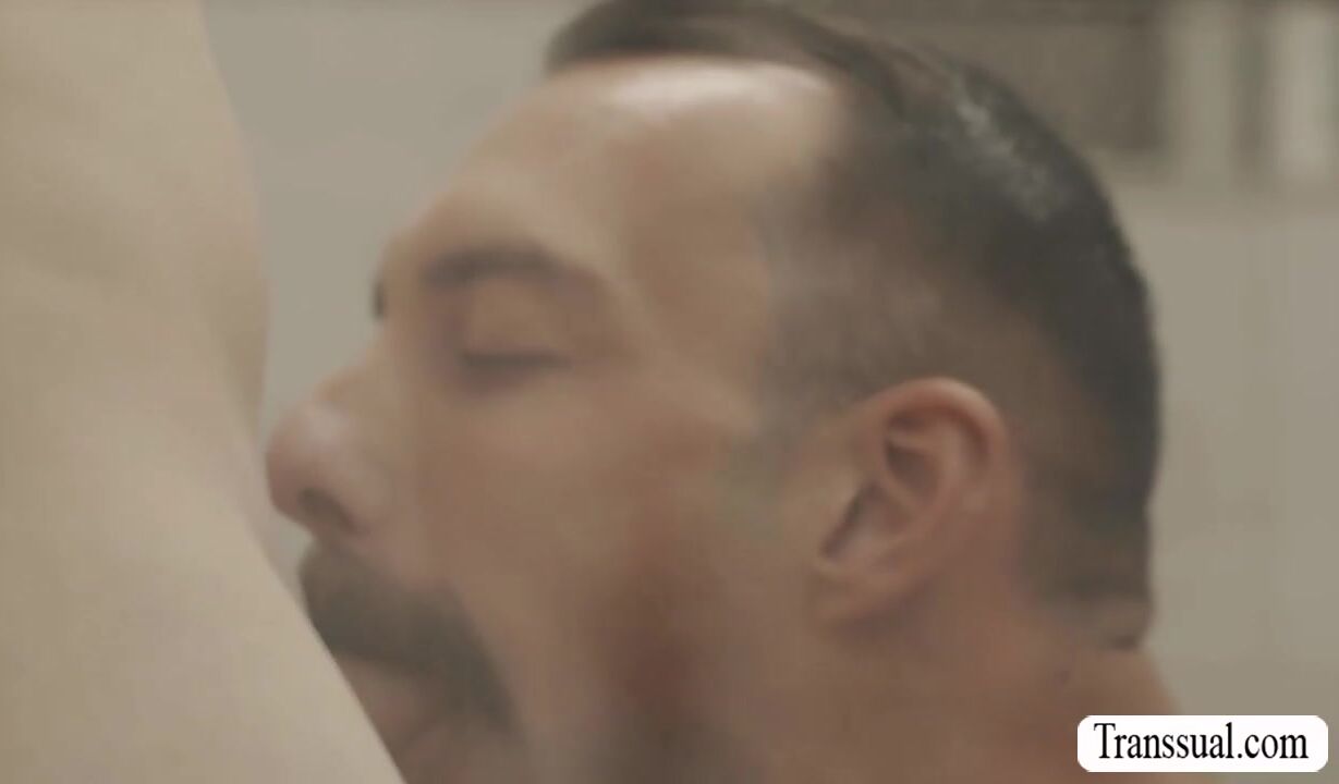 Busty TS maid is in the laundry room washing clothes and her boss saw her.He pulls out his dick and he then bareback fucks his TS maid.After that,they move into the bathroom and he starts sucking her she dick and bareback fucks her ass.