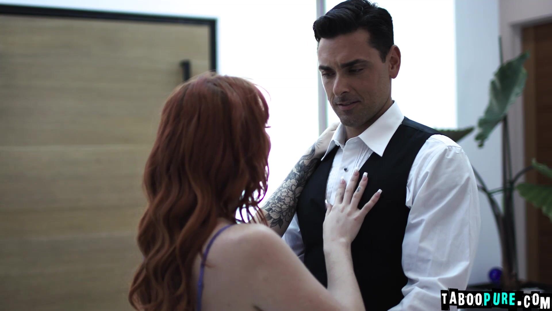 Redhead Arietta Adams is surprised when her stepfather Ryan Driller comes home early from a gala his wife Audrey Madison is nowhere to be seen. Arietta offers to show Gavin just how much she admires him. Arietta takes out his cock and blows him, which leads to sex in the entranceway.
